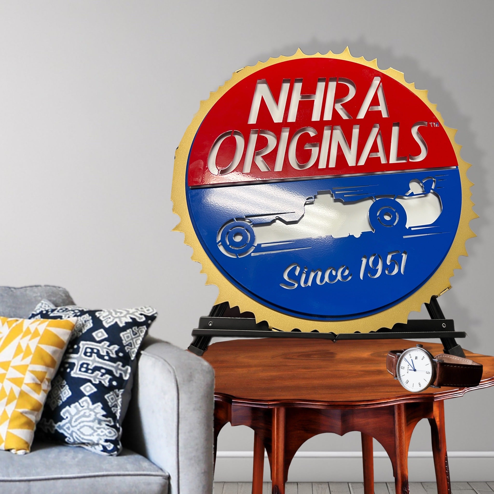 This multi-layer logo is licensed through NHRA and created by the craftsmen at Premier Metal Art, 100% made in the USA. Many sizes to choose from for your home, office, & Man(Woman)-Cave. Take yours to the track like we did and get it signed by the drivers for your own personal piece of memorabilia.